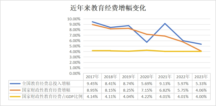 2012年我国财政性种植经费支拨占GDP比例达到4.28%,国度种植经费进入管事迎来一个遑急的里程碑。2013年这一比例进一步飞腾到4.30%。但2020年—2023年,比例从4.22%下跌至4.00%。