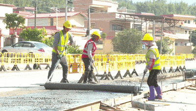 捱风缉缝,同步股东。在北环路的赛洞路段施工现场通常繁荣兴旺。施工东谈主员正握紧本年终末的施工黄金期,全力股东路面拓宽媾和路硬底化等工程。