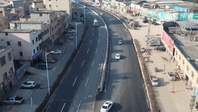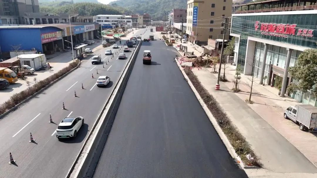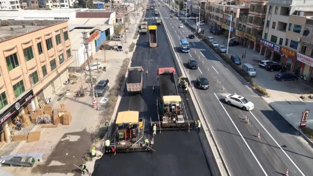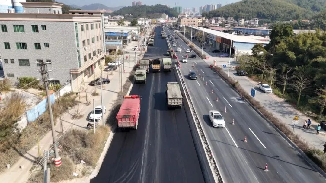 该工程目前需要加铺沥青的路段总长为3.3公里,最先广宁县巡视院(城南大路)至尽头恒大帝景,施工经过分三段,第一段0.5公里,为城南大路至成发红绿灯平交;第二段1.5公里,为成发红绿灯至小迳桥;第三段1.3公里,为小迳桥至恒大帝景。